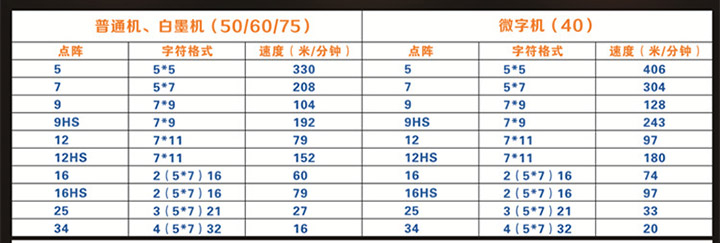 噴嘴:40微米(微字機),50/60/75微米(普通機、白墨機)